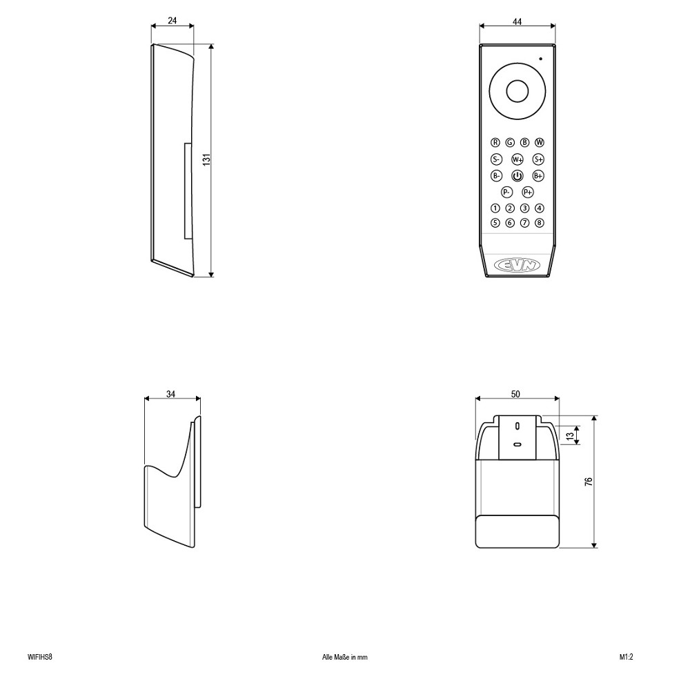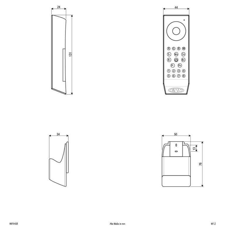 Mit dem 8-Kanal RGBW-Funk-Handsender können bis zu acht Empfänger getrennt voneinander gesteuert werden. Es können sowohl mehrere Empfänger auf einen Handsender bzw. Kanal, als auch mehrere Handsender auf einen Empfänger eingelernt werden. Lieferung inkl. Wandhalterung. Funktionen: Farbwechsel über Touch-Farbrad, Direktfarbwahl (rot, grün, blau und weiß), Ein- und ausschalten, so wie Programmwechsel. Betrieb über 3x AAA (1,5V) Batterien (nicht im Lieferumfang enthalten). Passend für folgende Empfänger: EFD12244X5A, RGB+W-WIFI4x5A und RGBWIFI674X5A.