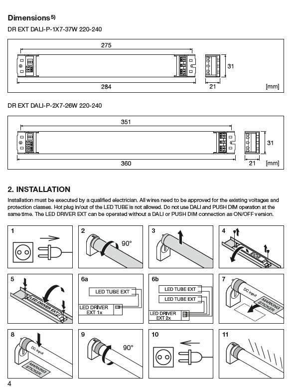 - Multiwatt LED Treiber für den Betrieb von LED TUBE EXTERNAL T5 und T8