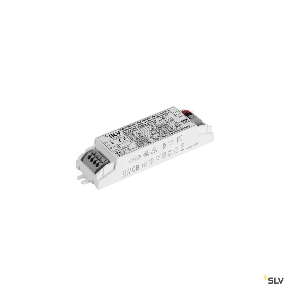 Dieser DALI und Push-Dim fähige Konstant-Stromtreiber mit 23 W Leistung bietet eine einstellbare Stromstärke per DIP: 100 mA, 150 mA, 200 mA, 250 mA, 300 mA, 350 mA, 400 mA, 450 mA, 500 mA, 550 mA, 600 mA, 650 mA, 700 mA. Eine Zugentlastung ist optional erhältlich