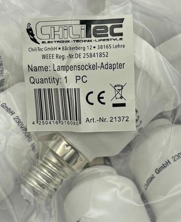 Preview: ChiliTec Lampensockel-Adapter, Kunststoff E14 auf E27