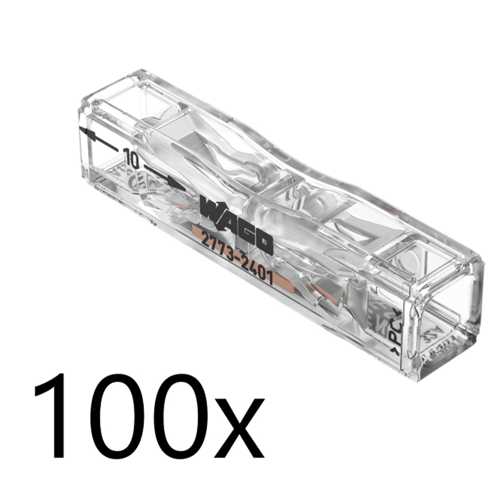 100 x Wago 2773-2401 Schnellverbinder Durchgangsklemme 0.75-4mm² 2-Leiter Klemme transparent - XXXL-Sparpack