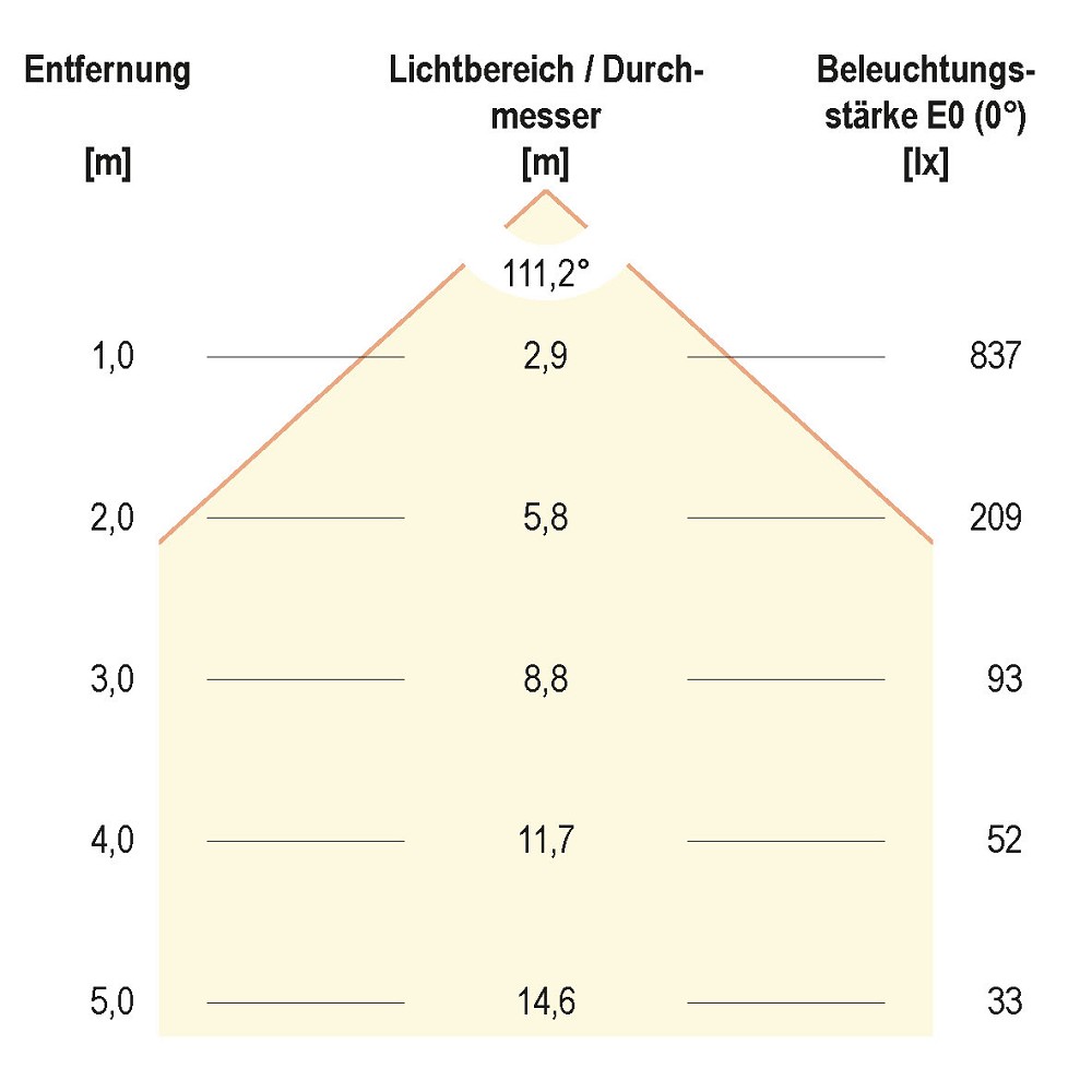 Ausstrahlungswinkel: extrem breitstrahlend >80°