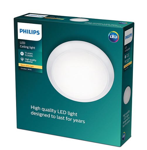 Philips myLiving Cinnabar ist eine runde weiße Deckenleuchte, die Bereiche in Ihrem Zuhause mit einem Lichtkegel aus warmweißem LED-Licht ausleuchtet. Das angenehme, blendfreie Licht wird durch einen Ring, der für einen gemütlichen Lichteffekt sorgt, noch optimiert.