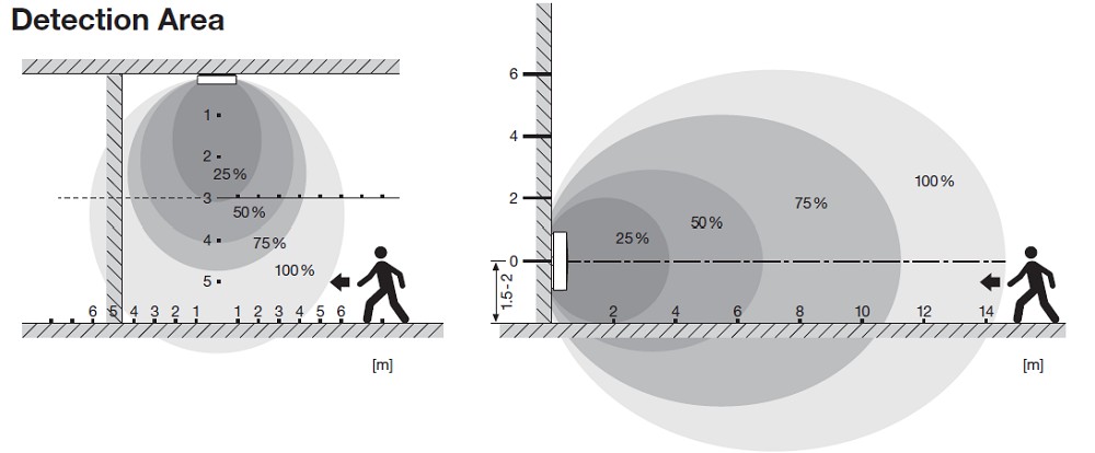 Erfassungsbereich des Bewegungssensors 3…7 m