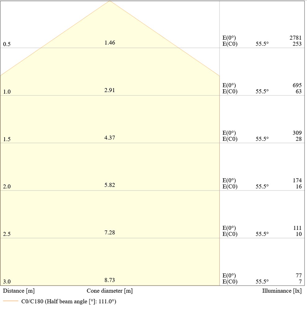 1) Für mögliche Optionen siehe Lumen-/Wattagen- Übersichtsdarstellung
