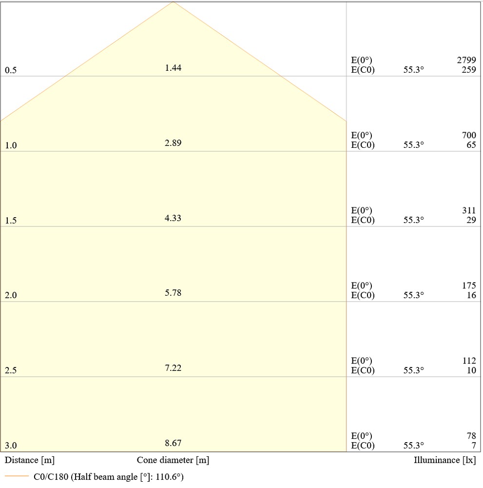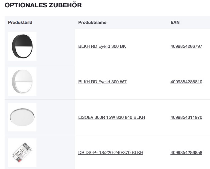 1) Für mögliche Optionen siehe Lumen-/Wattagen- Übersichtsdarstellung