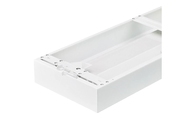 - Leuchtengehäuse aus weiß lackiertem Stahlblech (ähnlich RAL 9016)