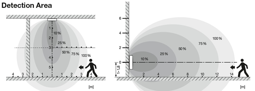 Erfassungsbereich des Bewegungssensors 3…8 m
