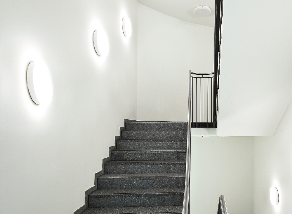 Die Round 31 sorgt als effiziente Wand- und Deckenleuchte in Eingangsbereichen, Treppenhäusern, Fluren, Gängen und Nebenräumen für optimale Beleuchtung. Durch hohe Widerstandsfähigkeit ist sie als robuste Leuchte für raue Umgebungen geeignet. Zudem lässt sich mit der Round 31 dank Ausführungen mit Bewegungssensor und DALI-Steuerung zusätzlich Energie sparen.