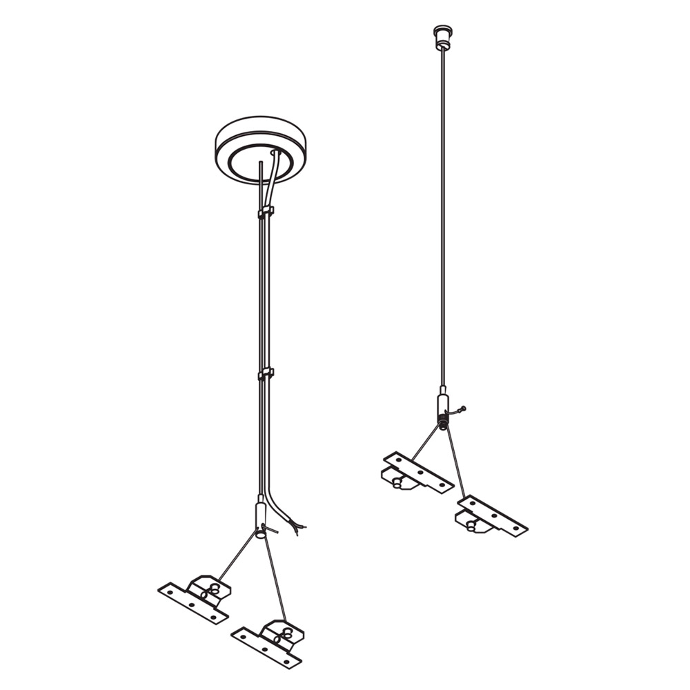 Apollon® 2, Y-Seilabhängung, Deckenhülse, mit mit 2 Klemmen, 1polig, max. 2,5mm², Anschlussleitung,2X0,75mm², Deckenbefestigungselement, aus Stahl, verzinkt, Baldachin, aus Kunststoff, Seil, aus Stahl, verzinkt, leuchtenseitige Befestigung, aus Stahl, verzinkt, Deckenhülse, aus Stahl, vernickelt, Verpackungseinheit: 1 Satz = 2 Stück