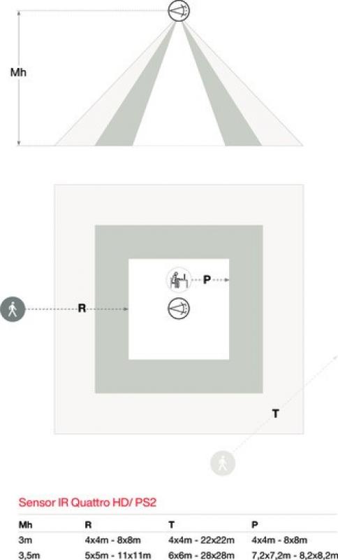 Erfassungsbereich min./max. 4,8x 4,8m/8,2x 8,2m