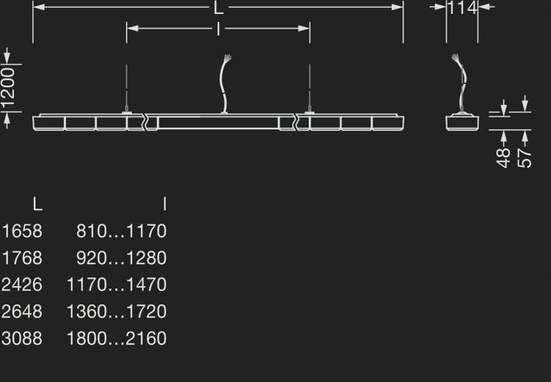 - Seilabhängung bitte zusätzlich bestellen (pro Leuchte 2 Stück erforderlich)