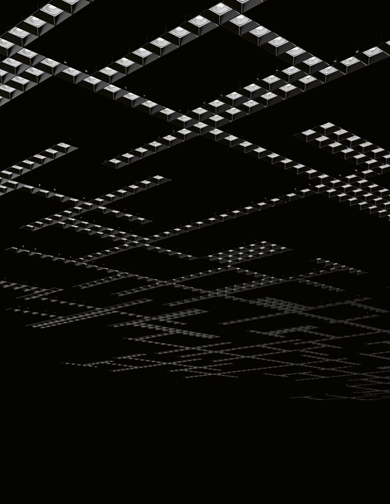 Office-Leuchte Silica® 21 für abgehängte Montage in Einzelanordnung - Lichttechnik: ELDACON® L: Linsen-Reflektor-Optiksystem: Kombination aus Linse mit Fibonacci-Struktur und Reflektor für homogenes, perfekt gemischtes Licht und gleichmäßige Beleuchtung; mit Design-bestimmenden Darklight-Reflektoren zur Vermeidung von Blendung, direkt/indirekt (60:40) symmetrisch eng strahlend BAP65 (L<= 3000cd/m²), UGR ≤ 19