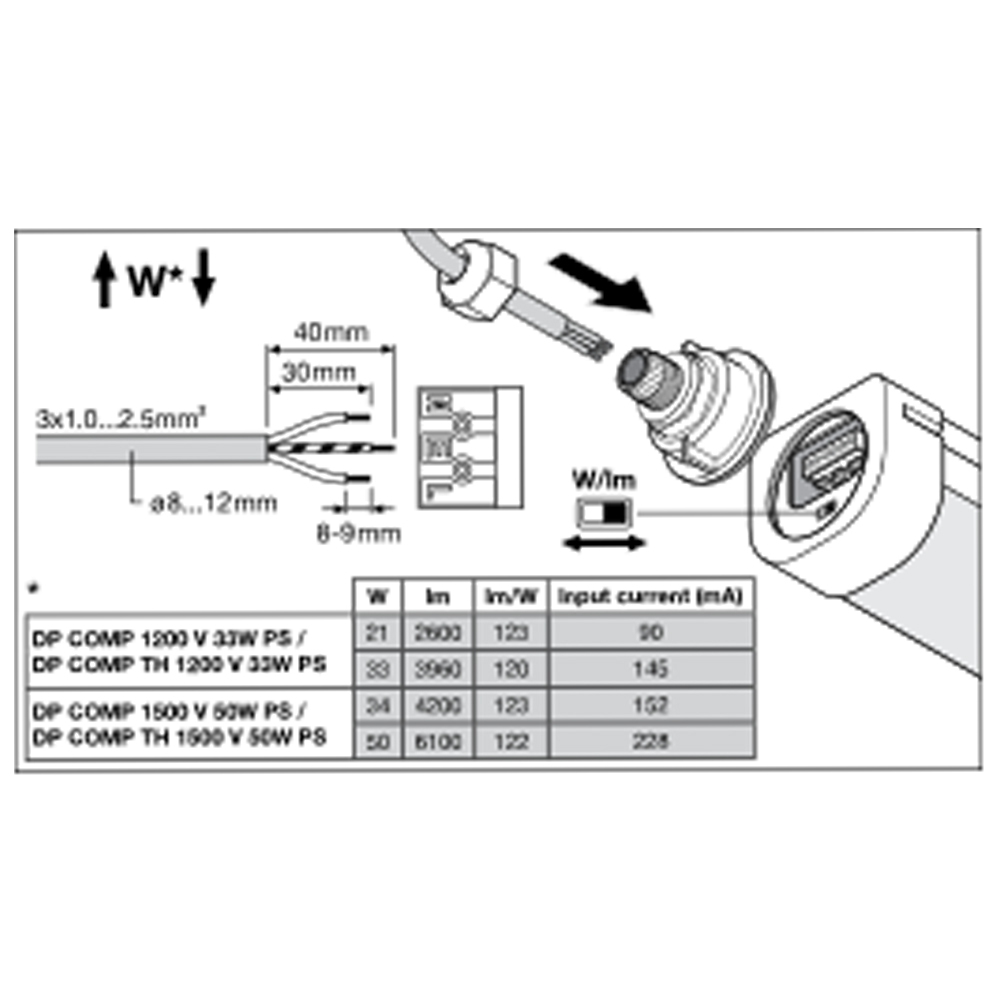 Produkteigenschaften- Power Select Option erhältlich um zwischen zwei Lichtströmen zu wählen