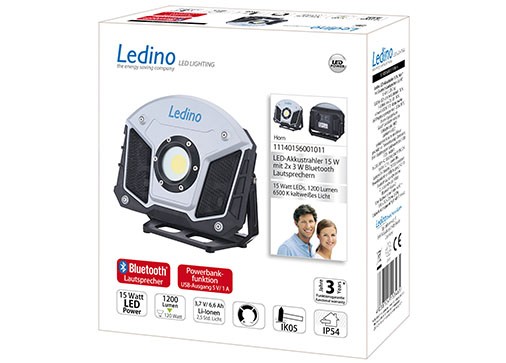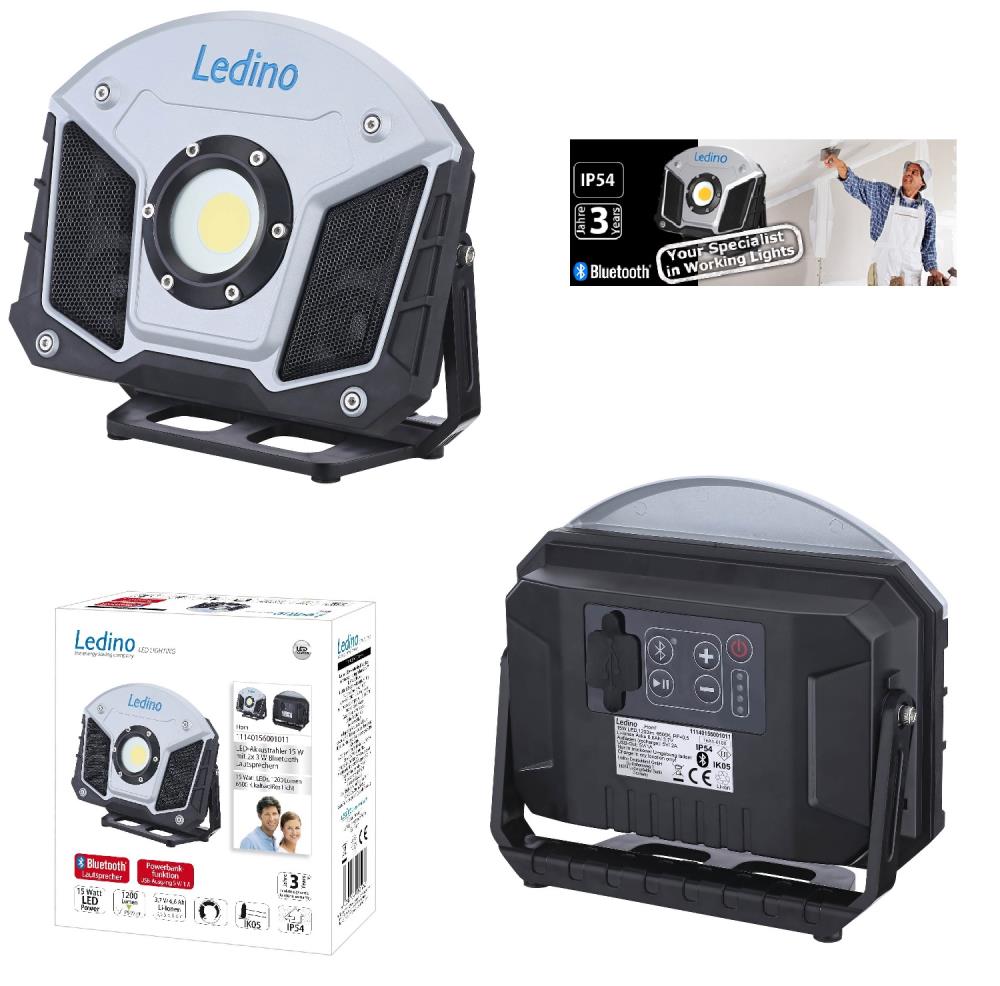 Ledino Profi LED-Akkustrahler HORN mit Music Bluetooth Baustrahler & mit Powerbankfunktion