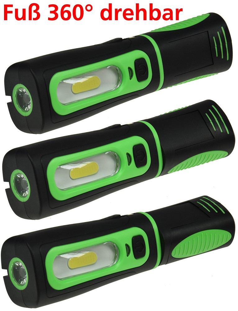 Richtig viel Licht immer dabei. Professionelle Arbeitsleuchte mit schwenk- und drehbarem Griff und sensationeller Lichtausbeute. Einsetzbar in unterschiedlichen Arbeitssituationen, da die Leuchte sowohl über einen Haken zum Aufhängen als auch zwei kräftige Magnethalter verfügt. Ladung über Akku, eine Akkuladung hält ca. 2,5-3 Stunden. Inklusive Ladeschale und zusätzlicher Taschenlampe.