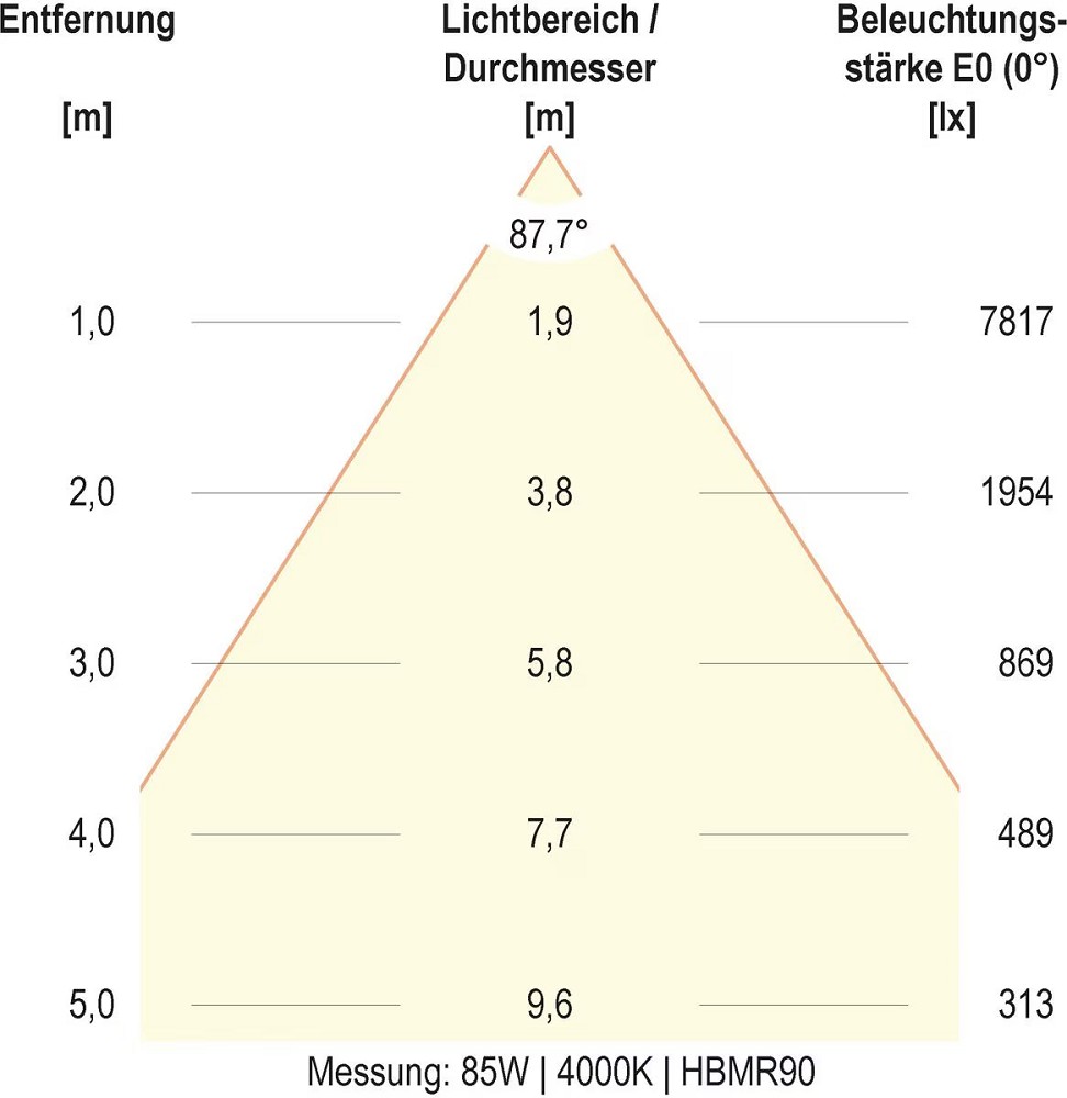Ausstrahlungswinkel extrem breitstrahlend >80°