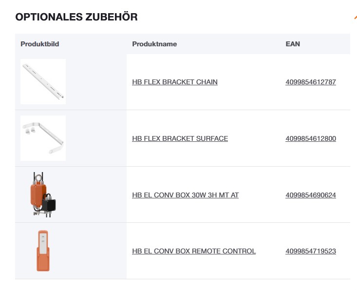 - Montagebügel für Aufputz- und Kettenmontage als separates Zubehör erhältlich