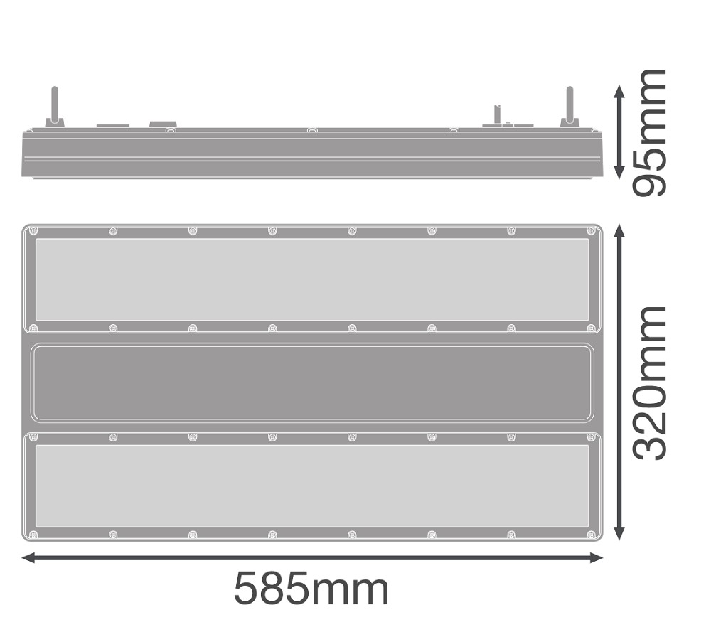 - Bis zu 70 % Energieersparnis verglichen mit konventionellen Hallenspiegelleuchten