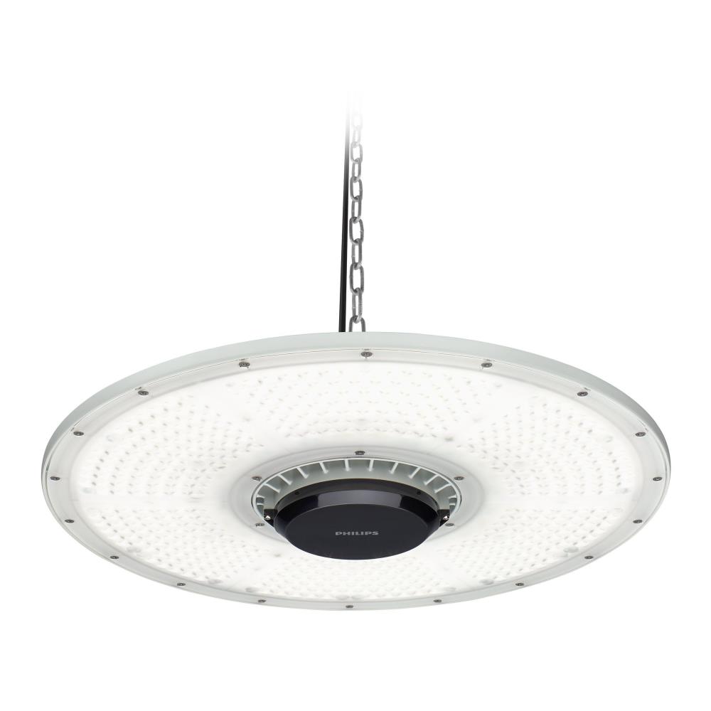Das CoreLine Highbay ist eine kompakte und robuste Leuchte für die Flutlichtbeleuchtung im Innenbereich mit bis zu 145lm/W und einer Lebensdauer von 50.000 Stunden (L80). Sie ist in drei Größen mit 10.000/20.000/25.000 Lumen erhältlich und ersetzt damit herkömmliche Hallenleuchten mit 250W/400W Hochdruckentladungslampen. Der elektrische Anschluss ist einfach: Die Leuchte muss nicht geöffnet werden und ist mit einem vormontierten IP65-Industriestecker ausgestattet. Die rotationssymmetrische Leuchte mit Einpunktaufhängung ist zudem kleiner und leichter als herkömmliche Leuchten. Dadurch ist sie sehr einfach zu handhaben. Die speziellen Linsenoptiken sorgen für eine hervorragende Lichtverteilung in zwei Ausstrahlungswinkeln (WB/NB).