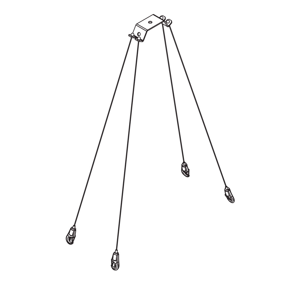 Highbay 11; 2-fach-Seilabhängung, deckenseitig mit 2 Befestigungspunkten; Stahl, verzinkt; inklusive Seil, für Abhängehöhe: 0,4..1,4m; Verpackungseinheit: 1 Satz