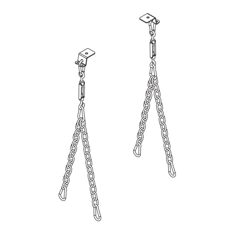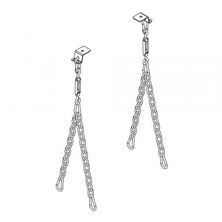 Highbay 11; 2-fach-Kettenabhängung, deckenseitig mit 2 Befestigungspunkten; Stahl, verzinkt; inklusive Kettenabhänger, bestehend aus Karabinerhaken, Kette und Spannschloss; für Abhängehöhe: 480mm ±15mm; Verpackungseinheit: 1 Satz