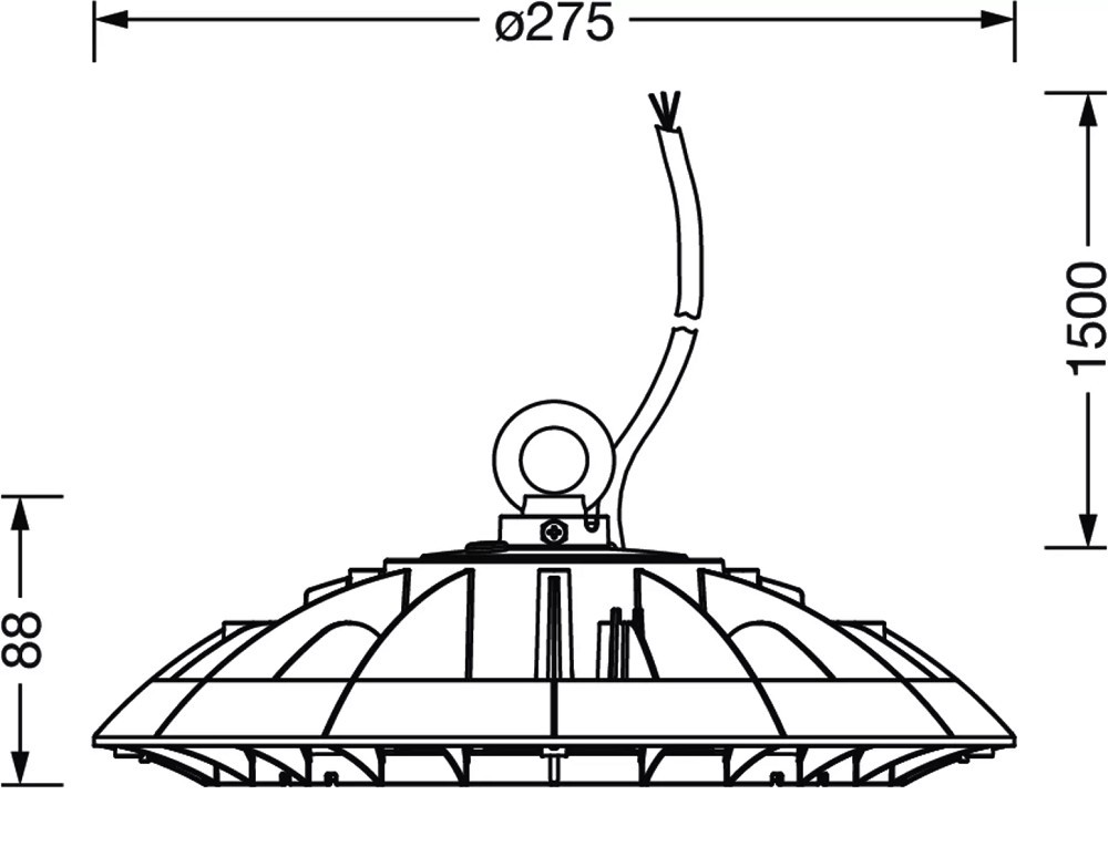 - rotationssymmetrische Hallenleuchte für Raumhöhen von 6 bis 15 m