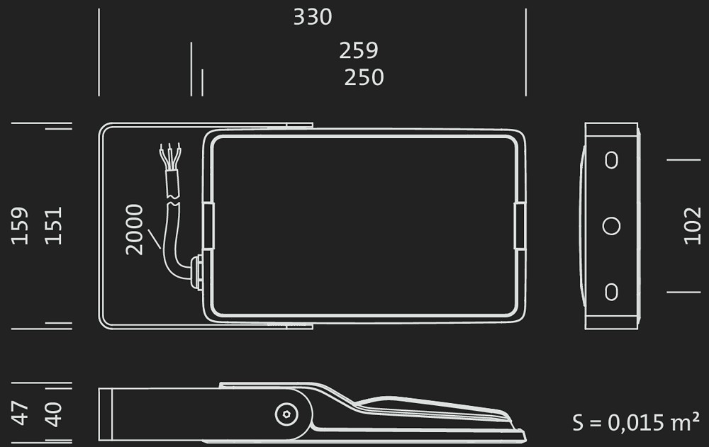 - Länge: 330mm, Breite: 159mm, Höhe: 47mm,