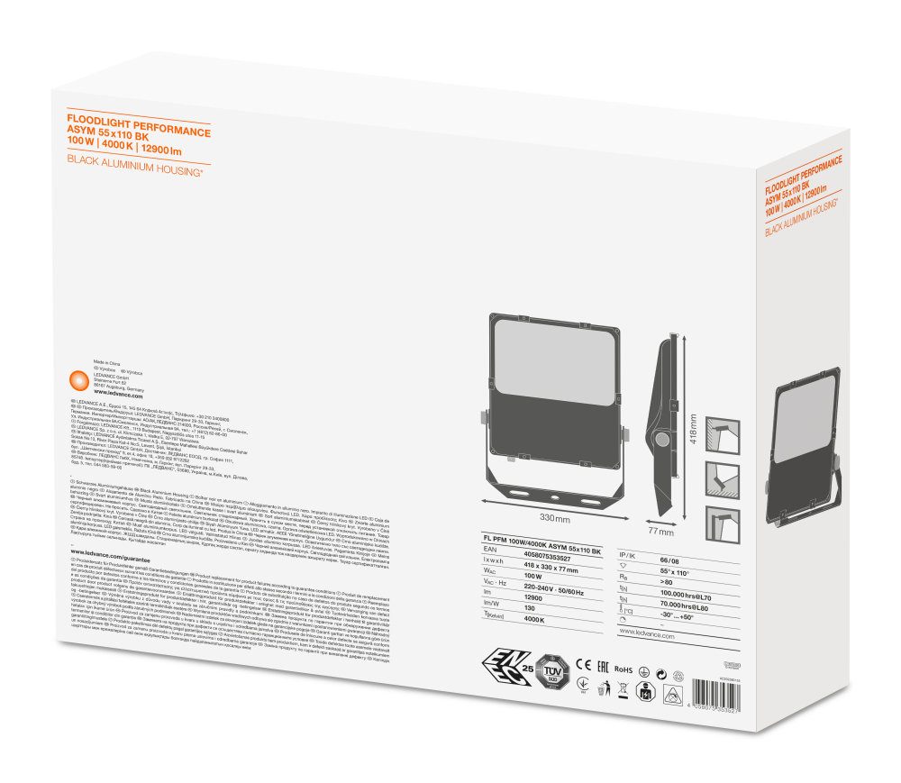Asymmetrische Lichtverteilung für zahlreiche Einsatzmöglichkeiten.