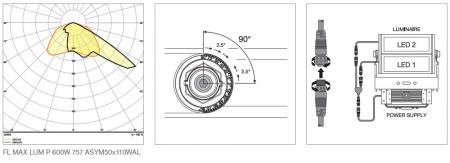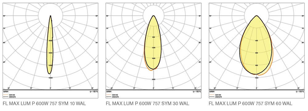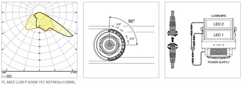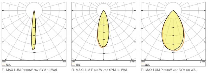 - Erhältlich mit 10°, 30° und 60° symmetrischer Lichtverbeilung, sowie 50°x110° asymmetrischer Abstrahlcharakteristik