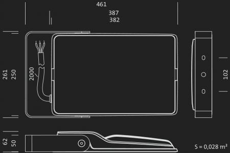 - Länge: 461mm, Breite: 261mm, Höhe: 62mm,