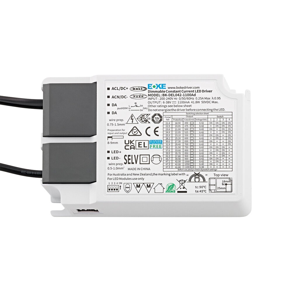 Unser Powerline DALI Konstantstromtreiber sorgt für die Stromversorgung des Fled Backlit Panels. Mit einem DALI-Bus lässt sich der Treiber ansteuern und dimmen. Das Netzteil ist ENEC und TÜV zertifiziert und sorgt für eine flickerfreie Ausleuchtung. Die angeschlossenen Leitungen minimieren den Installationsaufwand.