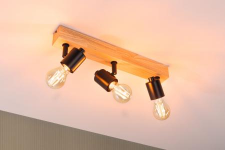 Das dreiflammige Spotlight Arvid vereint die moderne Mischung aus Holz und Schwarz zu einer gelungenen Einheit. Kombinierbar mit allen Leuchten der Arvid Serie sorgt es für ein angenehmes Licht im nordischen Stil. Das Leuchtmittel ist frei wählbar. Es lassen sich beliebige Retrofit-Leuchtmittel mit E27-Sockel und einer Leistung von maximal 20 Watt einsetzten.