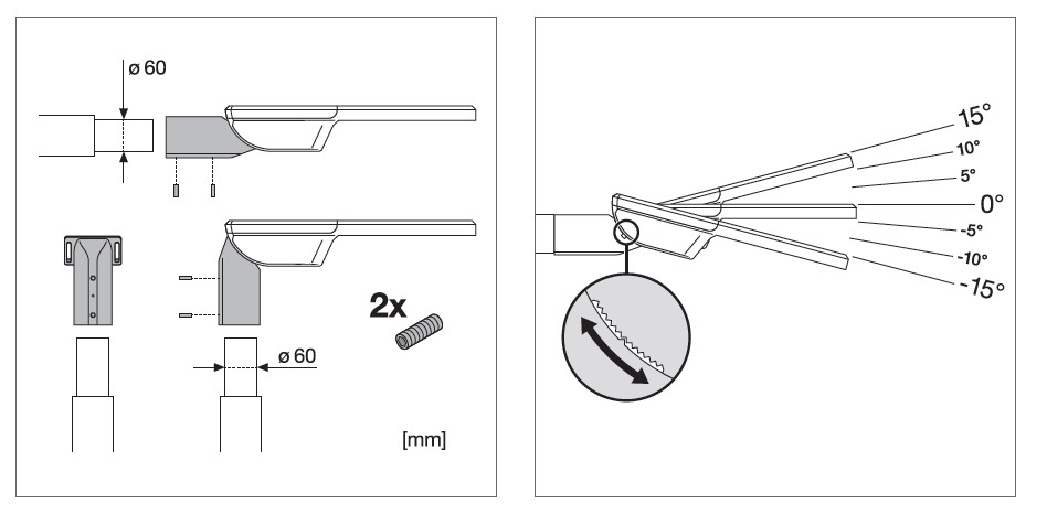 - +/- 15° Neigungsverstellung, bei geschlossenem Gehäuse