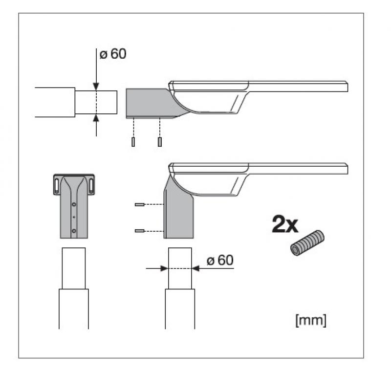 - Mastadapter für 42 und 76 mm Zopfmaß bei uns separat erhältlich