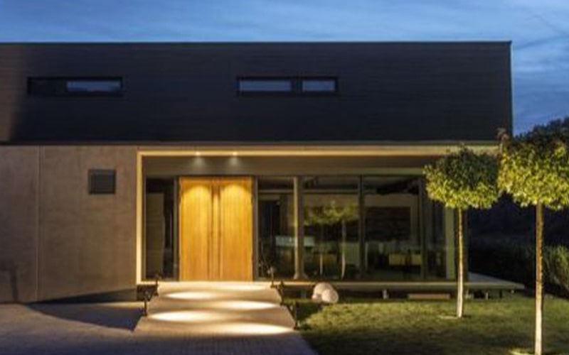 - Die Einfahrt oder der Zufahrtsweg sollte beleuchtet sein, damit die Verkehrsteilnehmer den richtigen Weg zum Haus und zum Parken leicht finden können. Auch besondere Architekturelemente können so akzentuiert und hervorgehoben werden. Harmonisch abgestimmt mit der Fassadenbeleuchtung und der Eingangsbeleuchtung entsteht ein rundes Lichtkonzept, was das gesamte Objekt perfekt inszeniert. Dafür eignen sich gute Bodeneinbauleuchten.