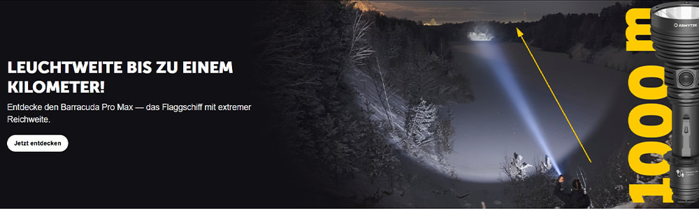 Die Barracuda Pro Max ist das Flaggschiff unserer Suchscheinwerfer-Serie und Ergebnis von über 15 Jahren Konstruktionserfahrung. Mit einer Reichweite von bis zu 1000 Metern und einer Lichtstärke von 2800 Lumen liefert sie einen beeindruckenden Strahl. Der klare zentrale Lichtfleck macht die Barracuda Pro Max ideal für Sucheinsätze und das Ausleuchten von Objekten in großer Entfernung – perfekt für Outdoor, Rettung und professionelle Anwendungen.