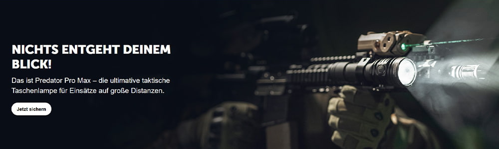 Die Predator Pro Max ist eine leistungsstarke taktische Taschenlampe mit beeindruckenden 3000 Lumen. Sie eignet sich ideal für Spezialaufgaben und die Jagd, da der zentrale Lichtkegel Objekte über große Entfernungen präzise ausleuchtet. Zusätzlich ist die Predator Pro Max kompatibel mit dem magnetischen Fernschalter und den Original-Unterlaufhalterungen – perfekt für professionelle Einsätze und Outdoor-Abenteuer.