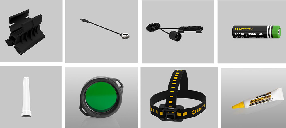 Im Zubehörbereich finden Sie alles, um Ihre Taschenlampe oder Stirnlampe optimal einzusetzen. Dazu gehören Halterungen für Unterläufe von Waffen, verschiedene Akkus und Akku-Ladegeräte, Farb- und Streufilter, Kopfhalterungen, Fahrradbefestigungen, Schmiermittel für Gewinde und O-Ringe, Signalaufsätze sowie Kabelfernbedienungen. So rüsten Sie Ihre Leuchten individuell für Freizeit, Outdoor-Aktivitäten, Jagd oder professionelle Einsätze aus.