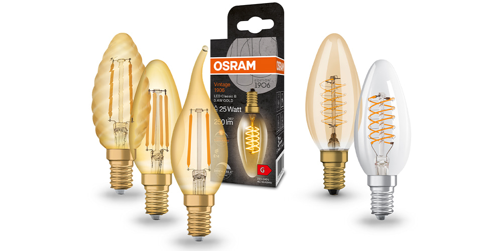 Diese Lampen verleihen Kronleuchtern und anderen Leuchten einen altmodischen Charme. Die Retro Filament Flamme trifft dabei auf moderne energieeffiziente Technologie.