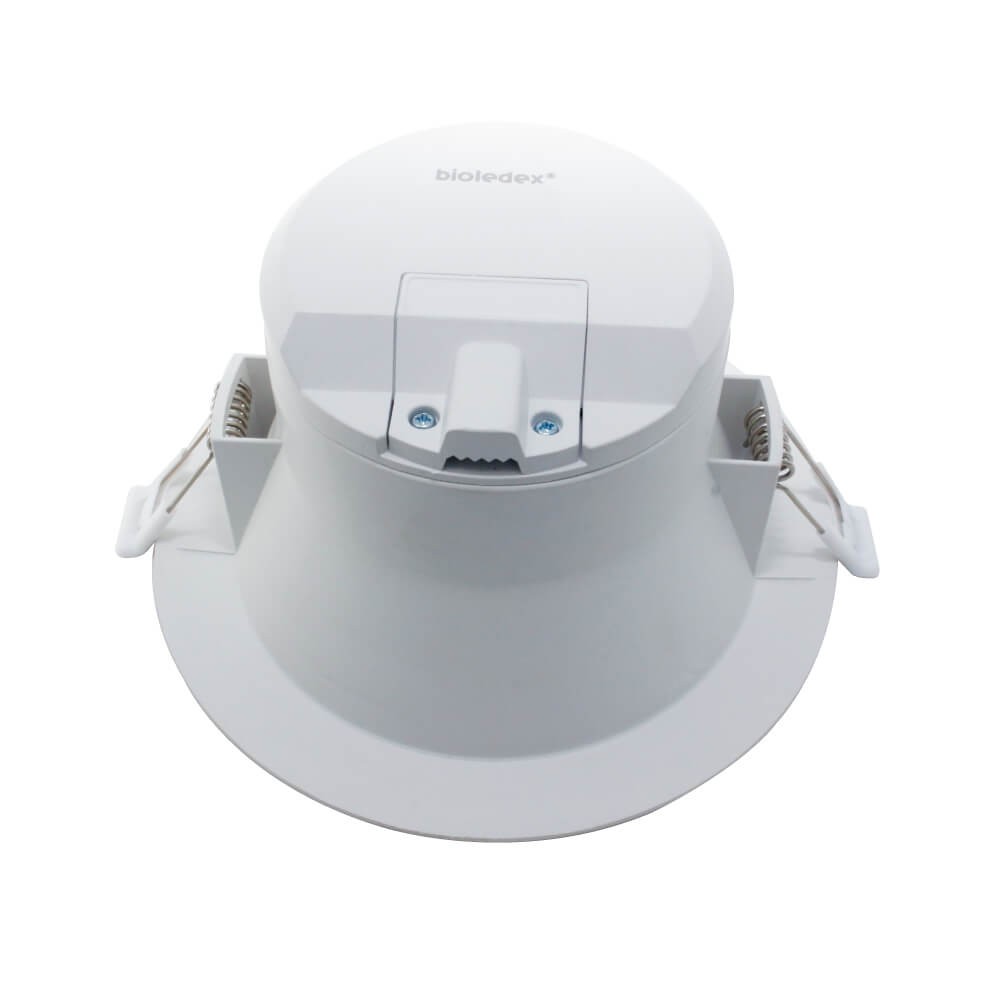 Die LED-Einbauleuchte der Serie DEKTO von Bioledex ist ein zuverlässiges 20W, 19cm Downlight, das ein angenehmes Licht spendet. Sie verfügt über eine Kombination aus einer matten Abdeckung und einem Spiegelreflektor, die für eine gleichmäßige Lichtverteilung sorgen. Durch die Schutzart IP44 ist sie für Feuchträume, Keller, Badezimmer und wasserempfindliche Bereiche geeignet. Das Design ermöglicht einen schnellen elektrischen Anschluss und eine einfache Reinigung des Downlights.