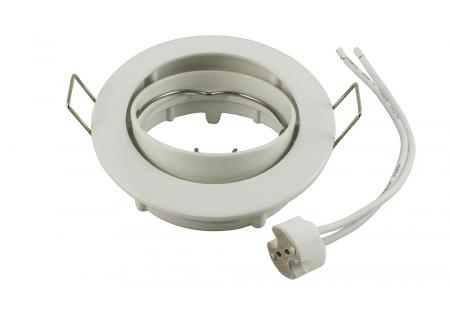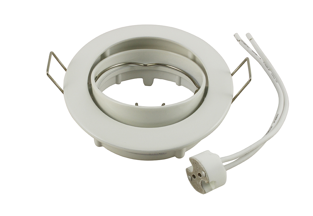 Material Aluminium Farbe weiß Schwenkbar Ja, 30° Außenabmessung 81 mm Einbaudurchmesser 73 mm Einbautiefe 20 mm Eignung Spotlampen, Ø 50 mm Leistung Max. 50W Lieferumfang inkl. 12V GU4/GU5.3 Keramikfassung (GU10 Fassungen werden NICHT mitgeliefert und können gesondert bestellt werden) für MR16- und GU10-Strahler Ohne Leuchtmittel