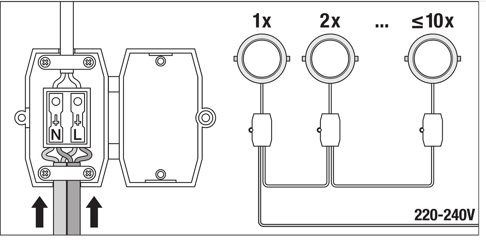 - Anschlussbox mit Steckklemme für werkzeuglosen Anschluss