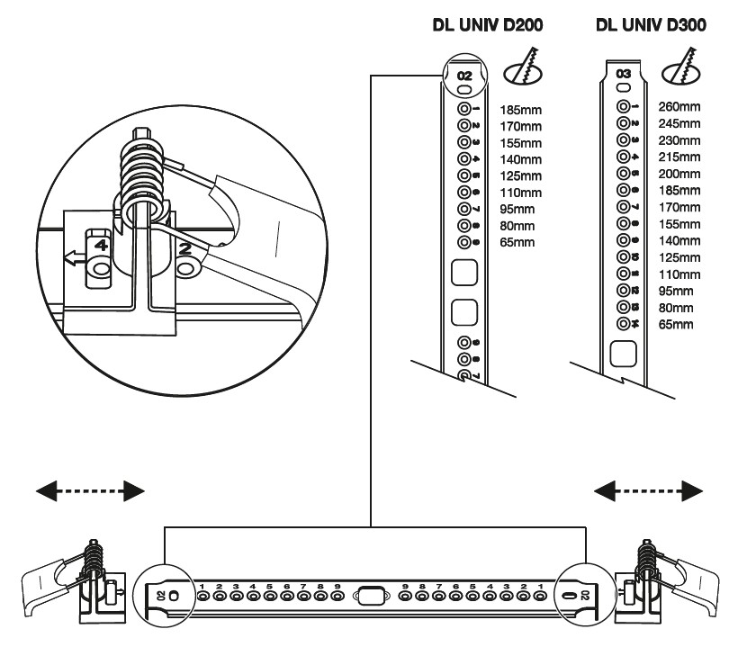 - Multi Cut-out: einstellbare Einbaufedern für Deckenausschnitte von 65 mm bis 260 mm