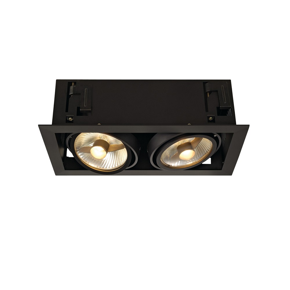 Die KADUX Einbauleuchten Serie erscheint in einem robusten Leuchtengehäuse mit ansprechend hochwertiger Optik. Die Lampenhalter dieser ES111 Hochvoltversion sind kardanisch schwenkbar und erlauben so die individuelle Ausrichtung der Lichtkegel. Die KADUX 2 Einbauleuchte wird fertig für den direkten Anschluss an 230V Netzspannung geliefert.