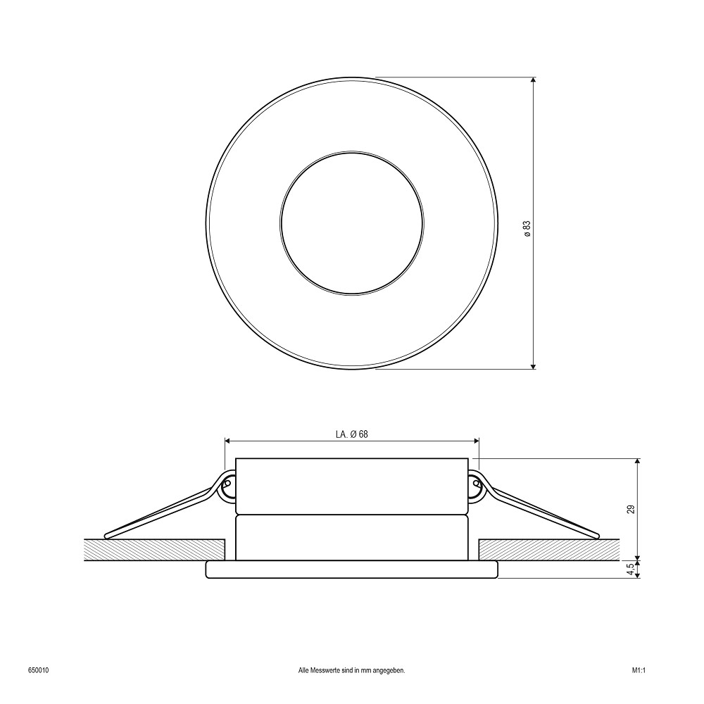 "Einbau in isolierte Decken, Brandschutz ""F mit Dach""": nein