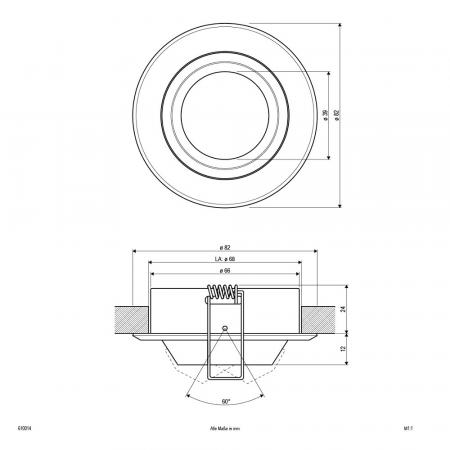 Schwenkbare Deckeneinbauleuchte für vielfältige Anwendungen im Innenbereich. Der konisch geformte Innenring ragt 10mm über den Außenring heraus. Abhängig von der verwendeten Fassung lassen sich verschiedene Leuchtmittel für die Unterschiedlichsten Beleuchtungsanforderungen in die Leuchte einsetzen, ganz egal ob Halogen oder LED, wodurch der Gestaltungsmöglichkeit nahezu keine Grenzen gesetzt sind. Der Schwenkwinkel der Leuchte beträgt 30°.