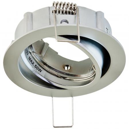 Schwenkbare Deckeneinbauleuchte für vielfältige Anwendungen im Innenbereich. Abhängig von der verwendeten Fassung lassen sich verschiedene Leuchtmittel für die Unterschiedlichsten Beleuchtungsanforderungen in die Leuchte einsetzen, ganz egal ob Halogen oder LED, wodurch der Gestaltungsmöglichkeit nahezu keine Grenzen gesetzt sind. Der Schwenkwinkel der Leuchte beträgt 15°. Die Leuchte ist aus Zink mit einer Zamaclegierung gefertigt.
