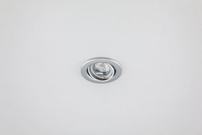 Schwenkbare Deckeneinbauleuchte für vielfältige Anwendungen im Innenbereich. Abhängig von der verwendeten Fassung lassen sich verschiedene Leuchtmittel für die Unterschiedlichsten Beleuchtungsanforderungen in die Leuchte einsetzen, ganz egal ob Halogen oder LED, wodurch der Gestaltungsmöglichkeit nahezu keine Grenzen gesetzt sind. Der Schwenkwinkel der Leuchte beträgt 20°. Der im Lieferumfang enthaltene Niedervoltdistanzbügel kann optional bei der Montage verwendet werden, wobei sich die Einbautiefe jedoch auf 120mm erhöht.
