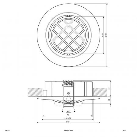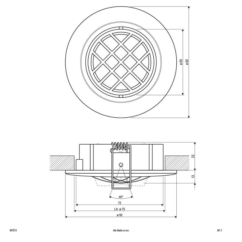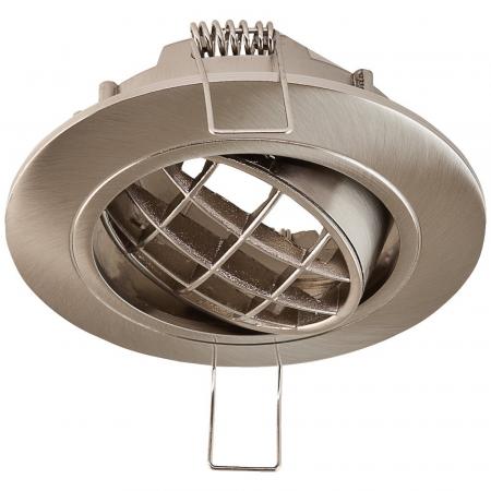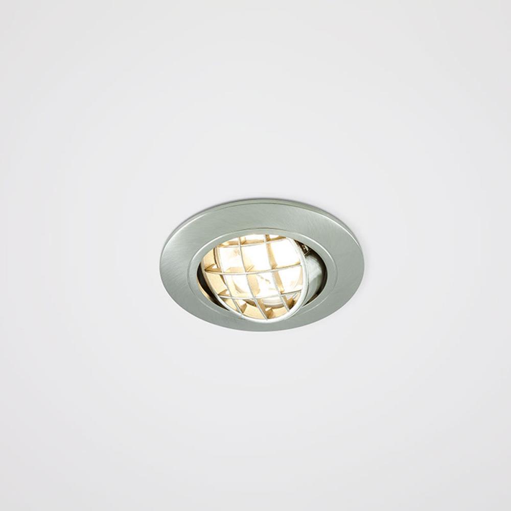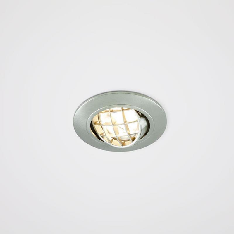 Schwenkbare Deckeneinbauleuchte für vielfältige Anwendungen im Innenbereich. Durch die Niedervoltfassung lassen sich verschiedene Leuchtmittel für die Unterschiedlichsten Beleuchtungsanforderungen in die Leuchte einsetzen, ganz egal ob Halogen oder LED, wodurch der Gestaltungsmöglichkeit nahezu keine Grenzen gesetzt sind. Es können mehrere Leuchten über ein Betriebsgerät betrieben werden, wodurch sich verschiedene Lichtgruppen innerhalb eines Raums schalten lassen. Die Leuchte ist komplett in Chrom satiniert gehalten und sorgt durch das Raster an der Frontseite für besondere Lichteffekte. Der Schwenkwinkel der Leuchte beträgt 20°.